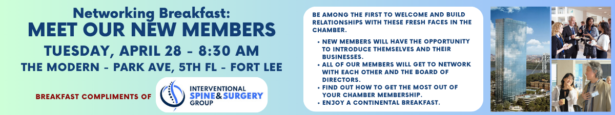 Whether you are a new member or a longtime member looking to expand your network, this event is the perfect opportunity to connect with like-minded professionals and learn more about the benefits of being part of the Fort Lee Chamber of Commerce. Our two previous new member events each had over 75 attendees gathered in the beautiful 5th Floor community space in The Modern at 800 Park Ave. in Fort Lee.